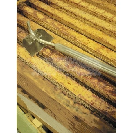 Mis au point par un apiculteur professionnel, le crochet supérieur permet de nettoyer l’espace derrière les bandes d’écartement et la lame inférieure de gratter le dessus des cadres, ruches, hausses à moindre effort. Cet outil à gratter est tout en inox.