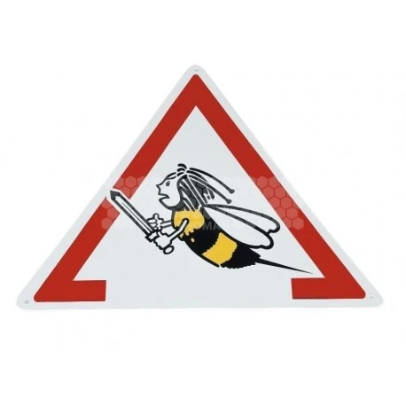 Notre pancarte triangulaire avec l’esquisse d’une abeille tenant une épée est spécialement conçue pour mettre en garde de la présence de ruches dans les alentours. Fabriquée à partir de Forex, un matériau très solide et résistant, cette pancarte est idéale pour une utilisation extérieure.