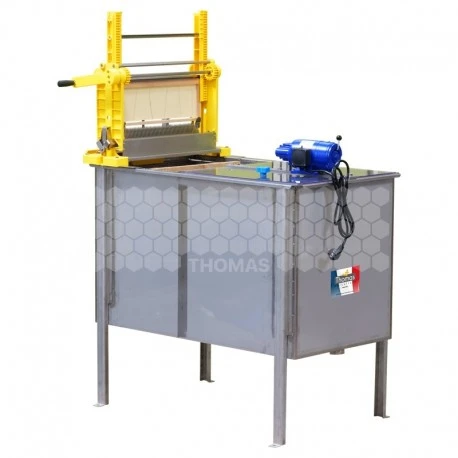 - d’un extracteur électrique Tetra Mini Thomas pour 9 1/2 cadres Dadant ou Voirnot hausse 13,5 cm avec bac centralisateur inox Thomas.