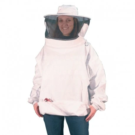Cette vareuse en coton léger blanc, spécialement conçue pour protéger le haut de votre corps des piqûres d’abeilles, s’accompagne d’un voile avec armature afin de le maintenir loin du visage.